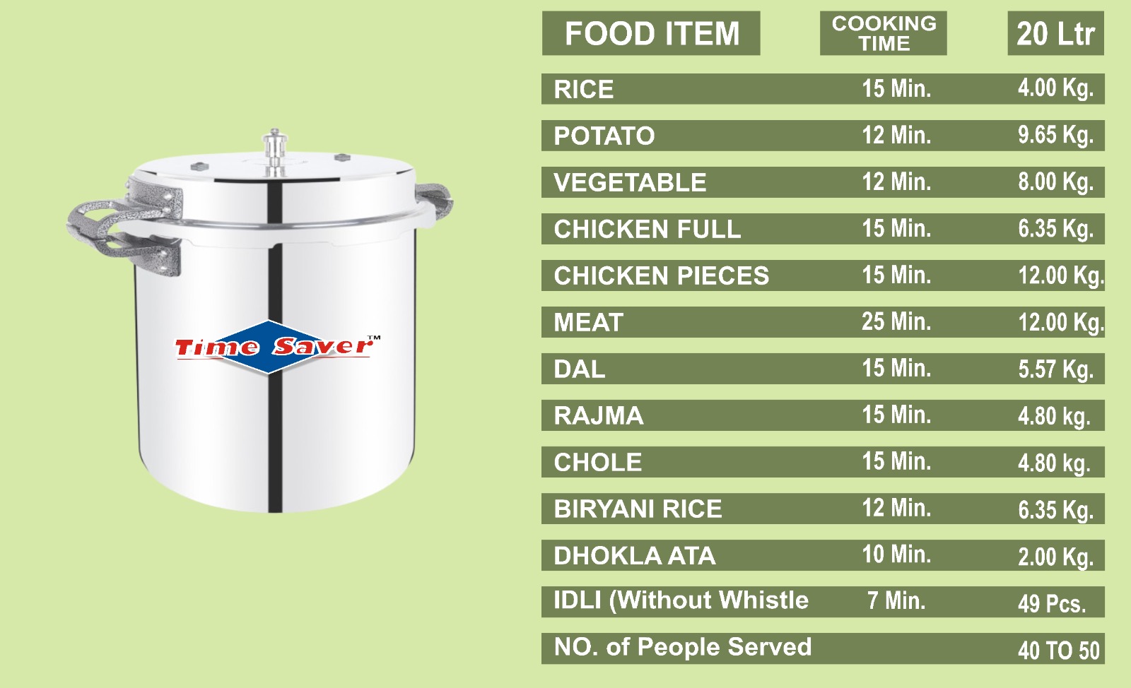 Time Saver ISI Mark Commercial Hard Anodized Aluminum Outer Lid Handi Pressure Cooker – (Silver, 20L)