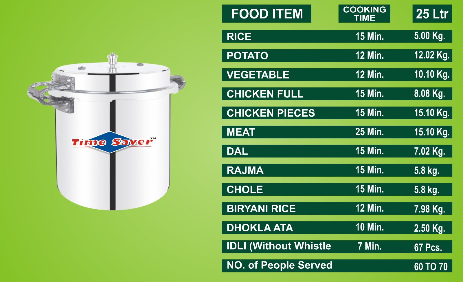 Time Saver ISI Mark Steel Pressure Cooker – (Silver, 25L)